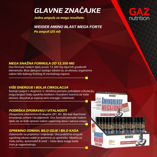 - 🔹 Prednosti Weider Amino Blast Mega Forte ampula