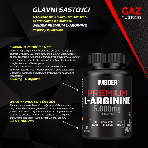 Upravo za te potrebe stvoren je Weider Premium L-Arginine. Sada dolazi s količinom od 5000 mg L-arginina u svega 5 kapsula, osmišljen da Vam pruži stvarnu podršku u poboljšanju cirkulacije krvi, zaštiti srca i krvnih žila, rastu mišićne mase, jačanju imunološkog sustava i povećanju energije! 💪❤️🔥