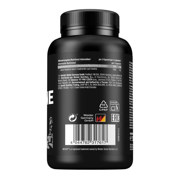 Kreatin monohidrat, Creapure, Povećanje snage, Zdravlje mozga, Weider kreatin, Kreatin u kapsulama, Mentalna energija, Očuvanje mišića, Dodatak prehrani, Kognitivne funkcije, ATP, Vitalnost, Oporavak mišića, Izdržljivost, Mentalni fokus, Mišićni volumen, Njemačka kvaliteta, Suplementacija za sportaše